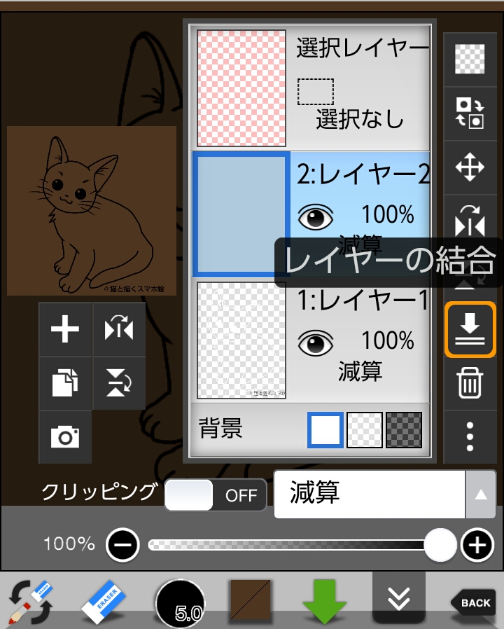 ④レイヤー2をレイヤー1に結合します。