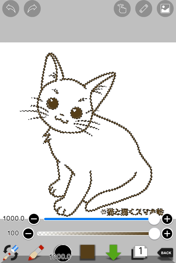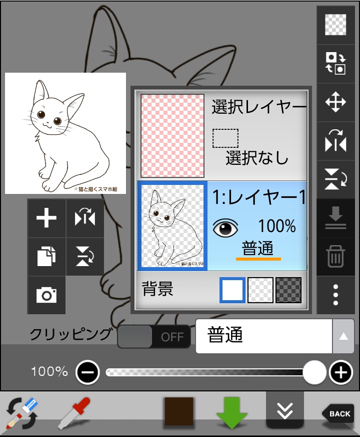 例として、こちらの猫の線画の色を変えてみます。