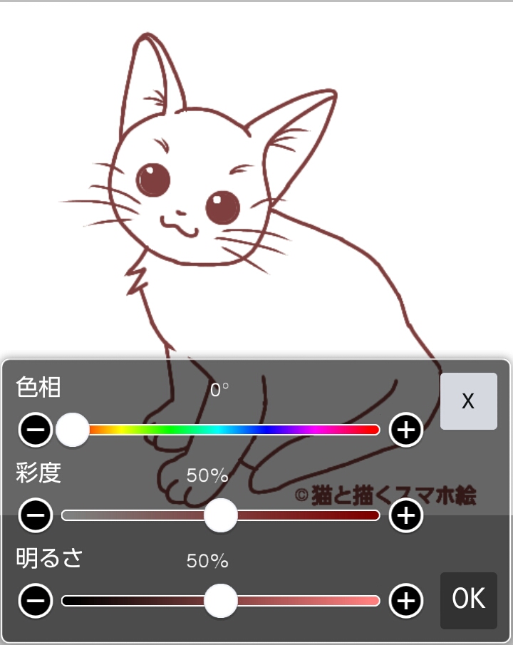 ③スライダーで色を調節して、「OK」をタップしたら色変え完了です。